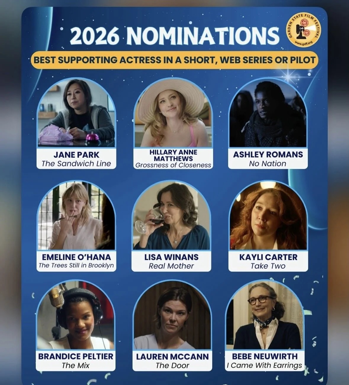 Thank you to the Garden State Film Festival for the nomination of best supporting actress in a short! A beautiful surprise. Our film The Door also got a nomination nod as the best ensemble! Now we know we were doing something right! Write/ Director James Graham is making things happen.